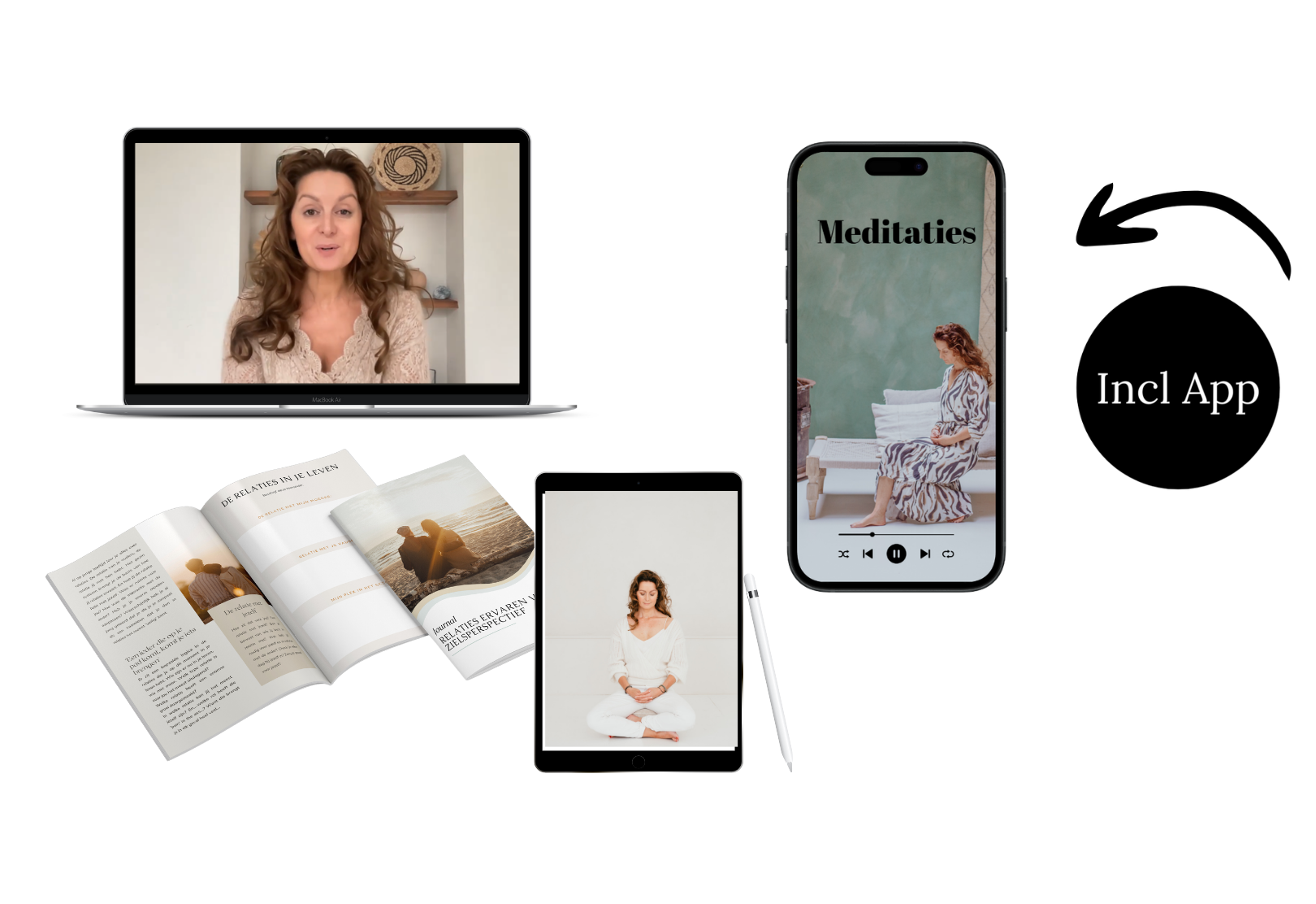 Bij elke module zitten speciale meditaties en afstemmingen die je op elk moment kan doen. Ook krijg je bij elke module werkboeken met praktische oefeningen.